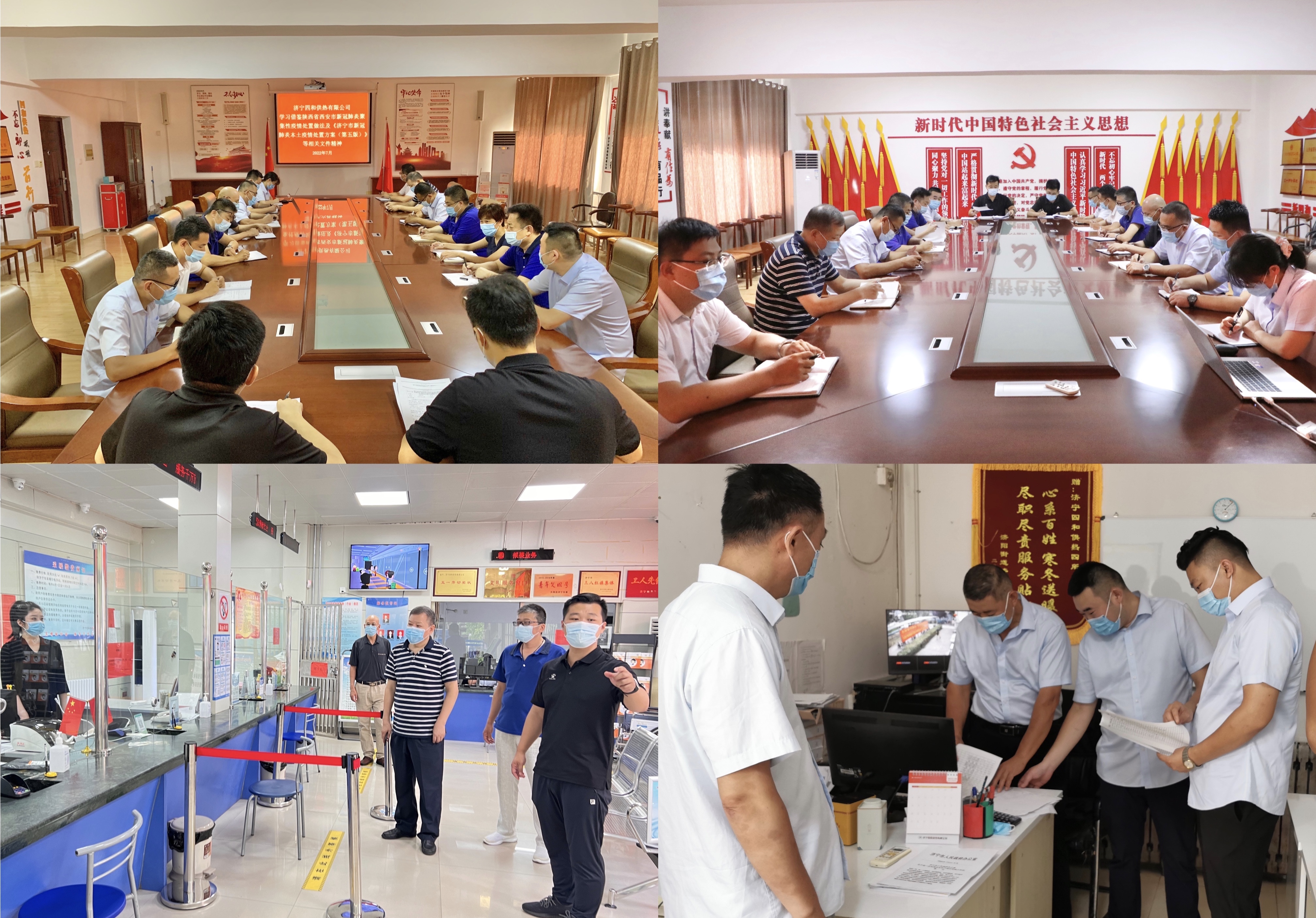 7月27日上午,公司領(lǐng)導(dǎo)及各科室負(fù)責(zé)人召開安全會(huì)議專題部署疫情防控工作。會(huì)議傳達(dá)并學(xué)習(xí)了《濟(jì)寧市新冠肺炎本土疫情處置方案(第五版)》等相關(guān)重要文件,對(duì)公司當(dāng)前形式的防疫工作和運(yùn)行管理上做出部署。會(huì)議結(jié)束后,四和供熱公司相關(guān)工作分管領(lǐng)導(dǎo)及科室負(fù)責(zé)人一行先后前往營業(yè)廳、各供熱所進(jìn)行疫情防控工作現(xiàn)場(chǎng)檢查,對(duì)疫情防控工作臺(tái)賬、防疫物資情況、外出人員登記情況、公共場(chǎng)所消殺記錄等進(jìn)行查閱,并聽取科室負(fù)責(zé)人及所長(zhǎng)對(duì)疫情防控工作的匯報(bào)。