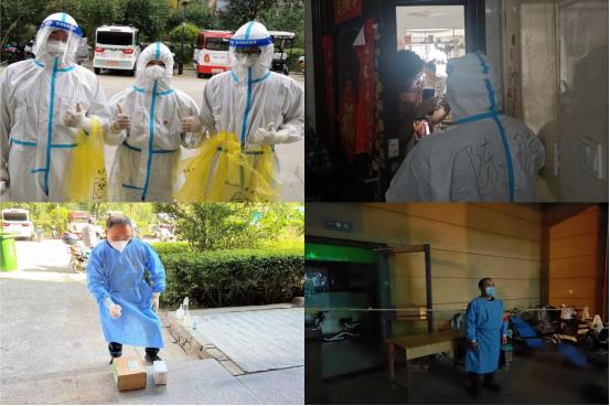 職工王衡在南苑街道濟(jì)安臺(tái)社區(qū)開展防疫宣傳、核酸檢測登記、居民物資采購等工作