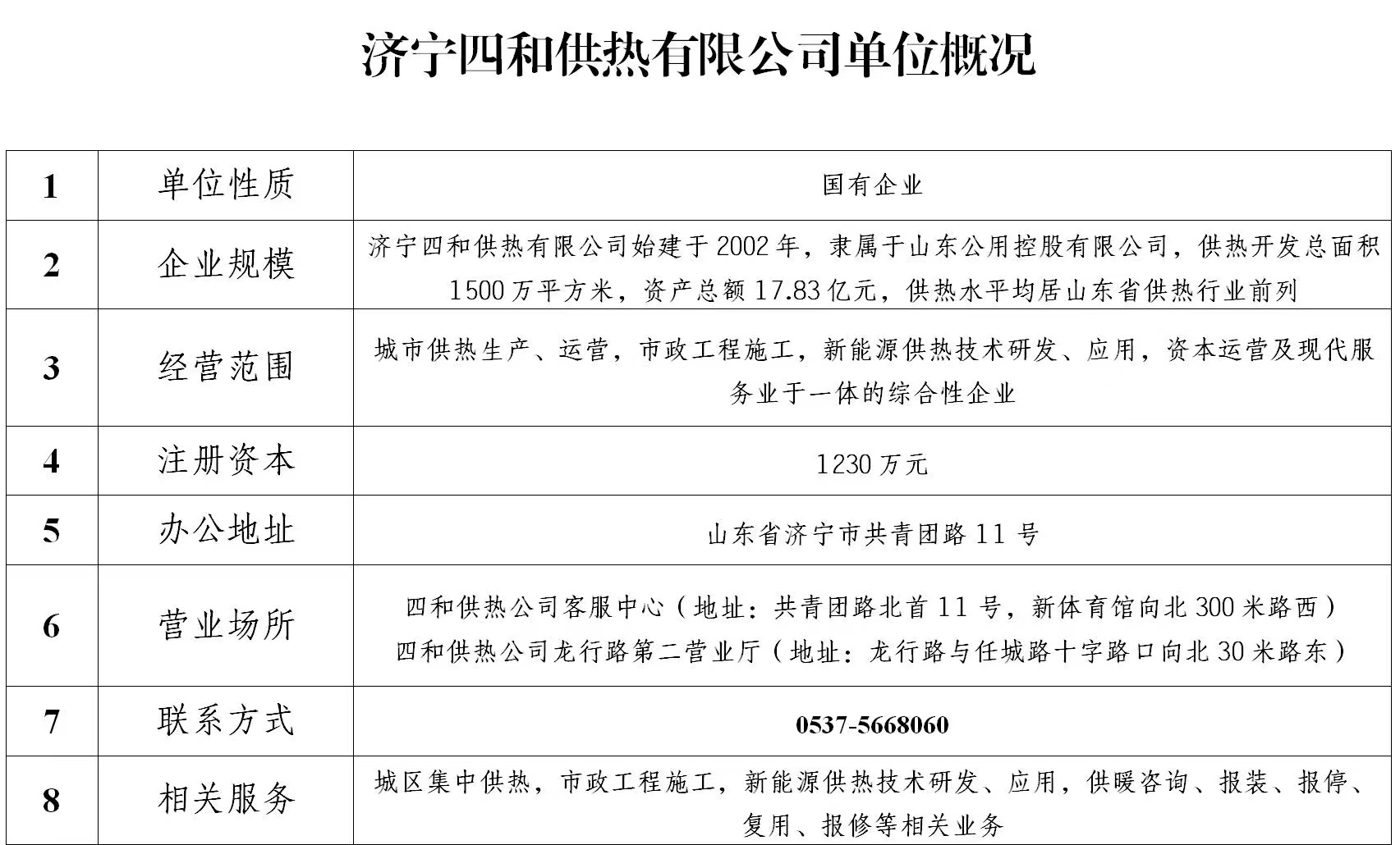 濟寧四和供熱有限公司始建于2002年,隸屬于山東公用控股有限公司,是集城市供熱生產(chǎn)、運營,市政工程設(shè)計、施工,新能源供熱技術(shù)研發(fā)、應(yīng)用,資本運營及現(xiàn)代服務(wù)業(yè)于一體的綜合性企業(yè)。目前,公司供熱轄區(qū)包括濟寧市任城區(qū)、濟寧市經(jīng)濟開發(fā)區(qū)、任城區(qū)經(jīng)濟開發(fā)區(qū)、太白湖區(qū),供熱開發(fā)總面積1500萬平方米,資產(chǎn)總額17.83億元,供熱水平均居山東省供熱行業(yè)前列。